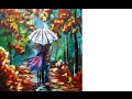 Lovers Walking In Rain Umbrella Art Beginners Acrylic Painting